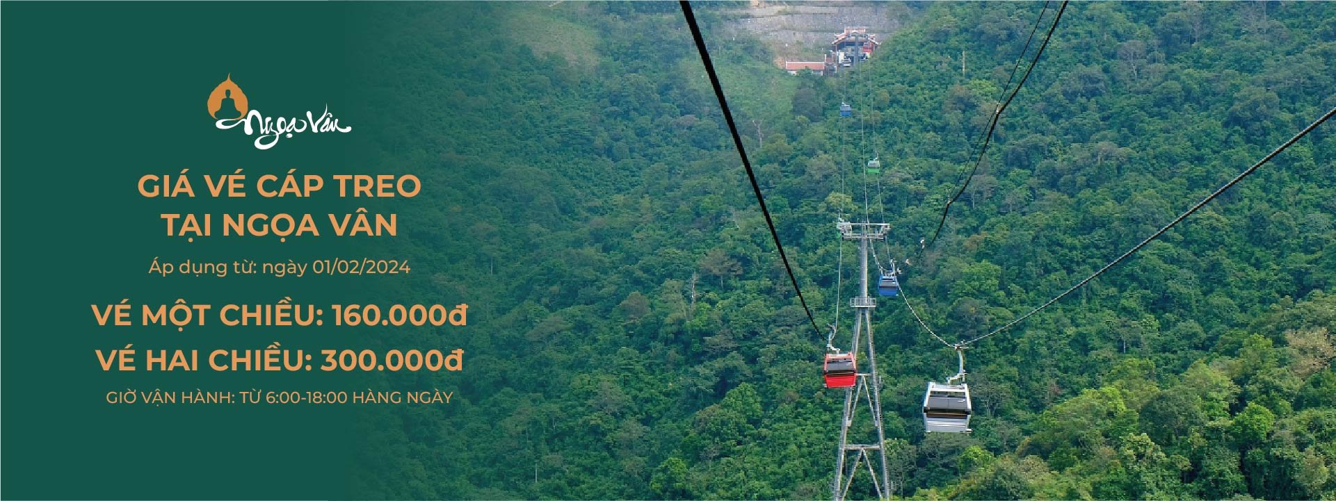 The entire cable car route is 2,200 meters long, consisting of 2 stations. It runs from Trai Loc 1 village to Ngoa Van Pagoda and is installed according to the standards of the International Organization for Transportation by Rope (OITAF).